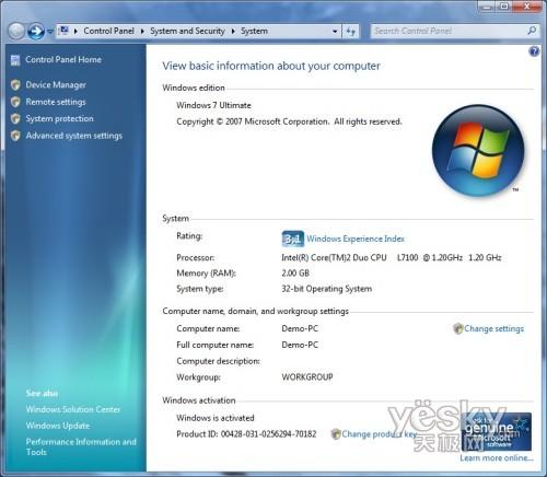 Windows 7的系统信息界面