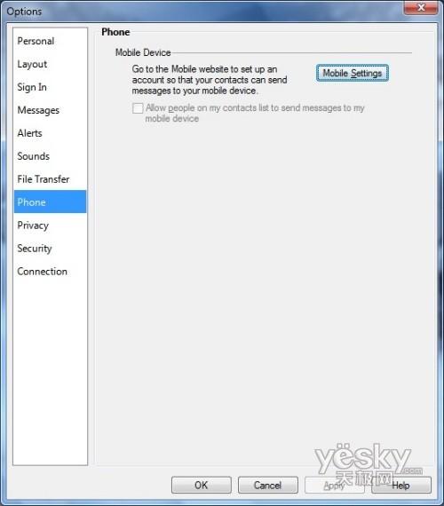 Windows 7中Windows Live Messenger电话设置界面