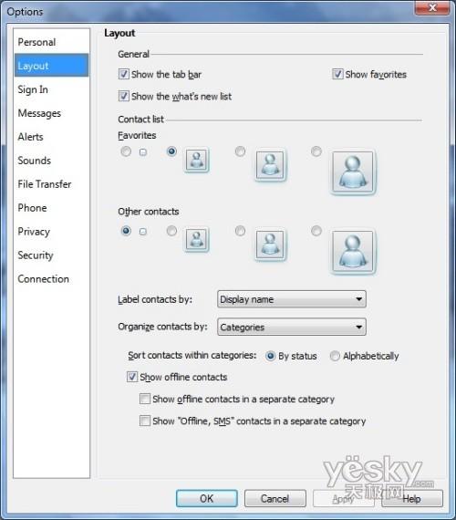 Windows 7中Windows Live Messenger布局设置界面