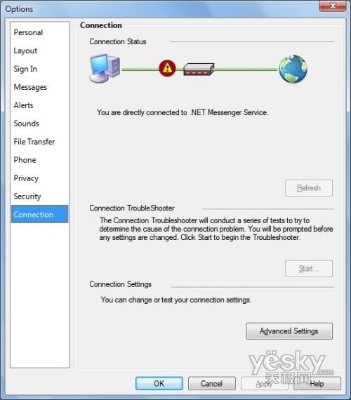 Windows 7中Windows Live Messenger连接设置界面