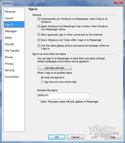 Windows 7中Windows Live Messenger登陆设置界面