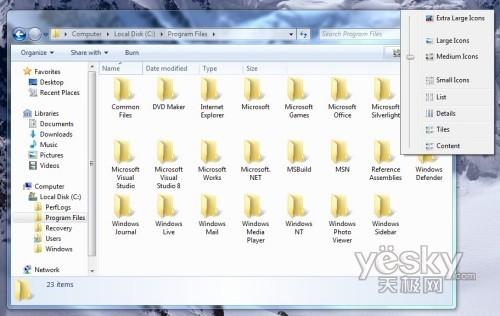 Windows 7中资源管理器视图选择界面