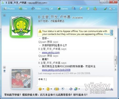 Windows 7中Windows Live Messenger选择登陆后状态界面