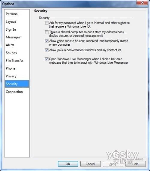 Windows 7中Windows Live Messenger安全设置界面