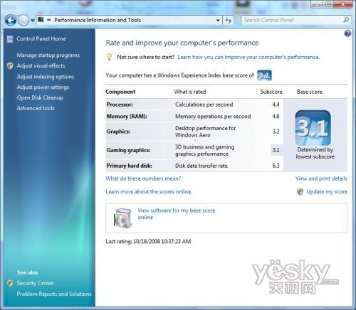 Windows 7中系统分级界面