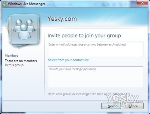 Windows 7中Windows Live Messenger添加组成员界面