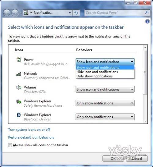 Windows 7中对任务栏属性的设置界面