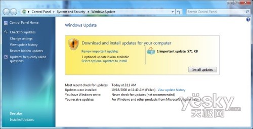 Windows 7中Windows Update界面