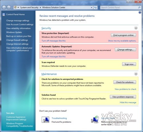 Windows 7中Windows解决方案中心界面