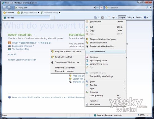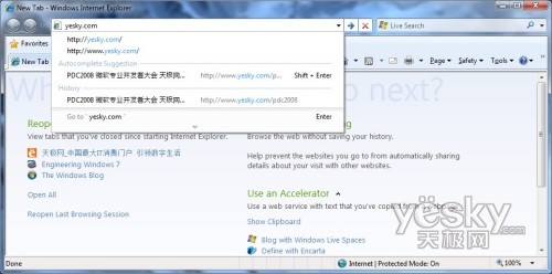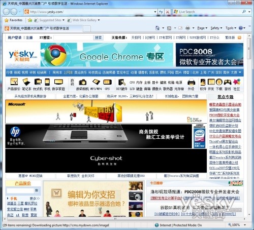 Windows 7中Internet Explorer 8中打开天极网首页