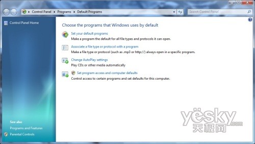 Windows 7中默认程序设置界面