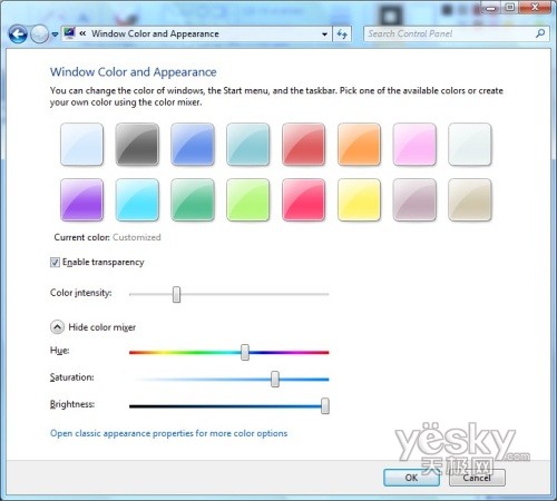 Windows 7中颜色和个性化设置界面