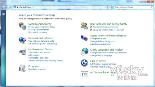 Windows 7中控制面板首页