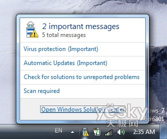 Windows 7中Windows解决方案中心提示界面
