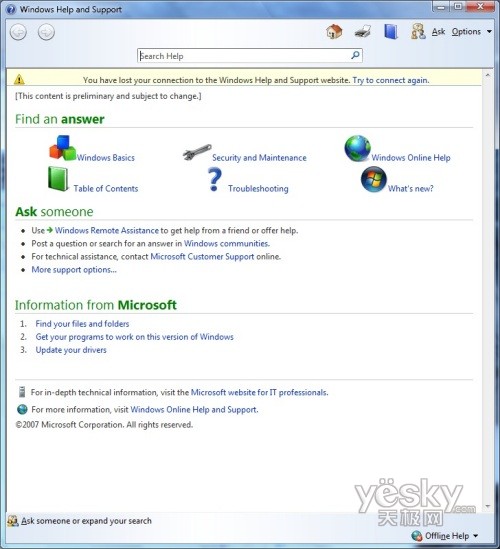 Windows 7中帮助和支持界面