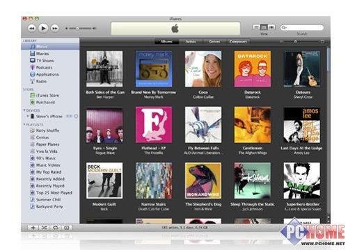 iTunes8还增加了一种很酷的全新浏览播放,就是以专辑封面的形式现实你整个音乐库,苹果将这种浏览模式称之为Grid View网络浏览模式。