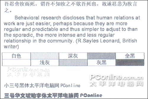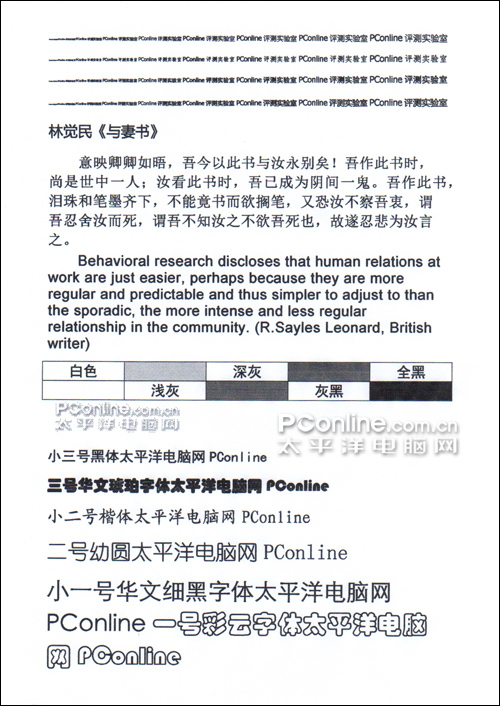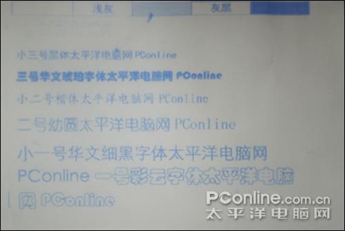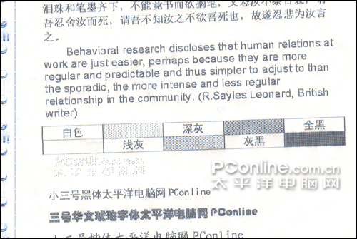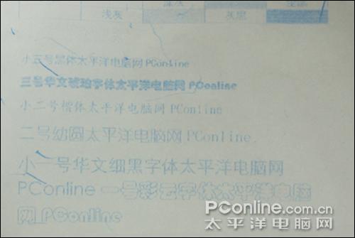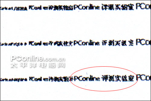 此次打印的效果相比之下差了很多,英文、图表明显出现偏打现象,水印漏打情况也较严重。但在甚高速的情况下打出这种效果也是可以接受的,毕竟小编认为熊掌和鱼不可兼得。