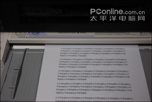 大家可以通过小编在图片上的红点对比下测试的真实性,为了详细记录这一功能测试,小编可谓是费尽心思,怪就怪ML6300FC传感器的感应功能实在太灵敏。起初小编只想拍一张斜放在载纸台上的打印纸,可后来发现通过自己动手、丰衣足食的行为来证实不太可能,若想斜放的打印纸被载纸台拖住而又不被感应器感应到(哪怕是0.01毫米的距离),难度实在是太高。即便室外温度16,室内温度20,但小编仍是汗了一下,10遍之后只好求助同事完成了这个看似简单实属复杂的过程。