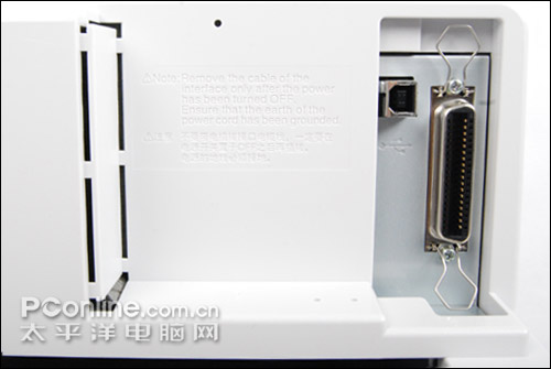 接口方面顾了新老用户的不同需要,标配了USB接口和并口(标配IEEE-1284双向并行接口),方便了用户的不同选择。出线口能很好的固定数据线,避免了数据线因松动、走位而导致故障等问题,这些设计让用户除却了很多担心。