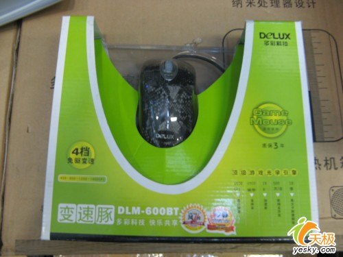 多彩DLM-600BT变速豚鼠标同样作为游戏鼠标推向市场,包装风格依然延续多彩惯用的绿色。