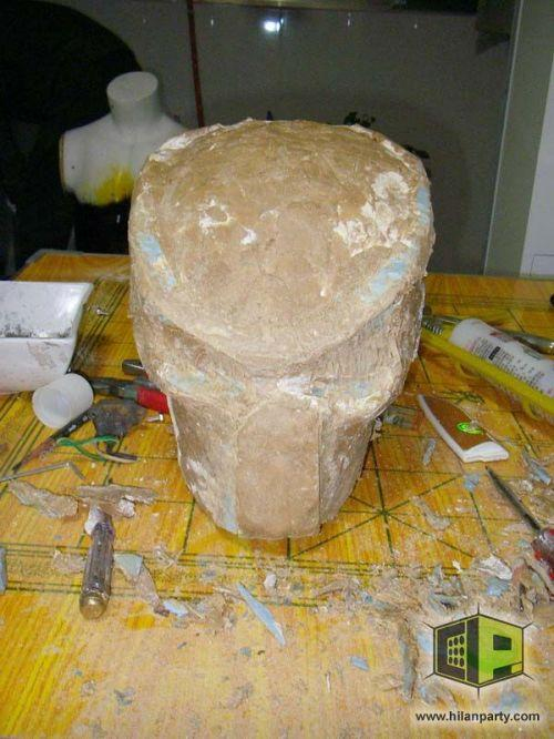 作者利用高额度泡沫板经过深度加工,完成了铁血战士头部的改造。