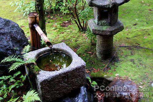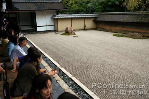 下一站,龙安寺,这里有一片空场子,里面放了十几块石头,一群人坐在房子里看这片空场,数着里面的石头。经过讲解我才知道这个现象是有典故的,著名的枯山水石庭,传说这里是高人悟道的地方,场子里一共有十五块石头,但是任凭你坐在哪里,总是只能看到十四块石头。高人们悟出来“空”什么的,但是我觉得这只能告诉我眼睛看到的未必就是真实的。而旁边一个通行的小姐换上20的广角很轻松的就将15块石头收到了相机里,还是现代科学技术高啊……