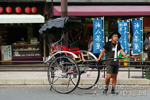 岚山到处可以看到古装的人力车夫在路边到处招揽客人,路边餐馆外面挂着盏盏红灯笼很是别致。