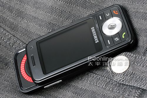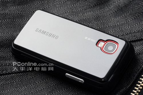 三星i450的外观非常有意思,它采用了类似诺基亚N95的双向设计理念,滑盖除了可以向上的常规推开之外,还可以向下滑动。而且向下滑动手机滑盖之后,机身的上方则会出现一个红色的弧形圆环,同时也能够看到在红色半圆里面的硕大扬声器,不仅在外放的时候,有着不错的效果,而且看起来也是非常酷。