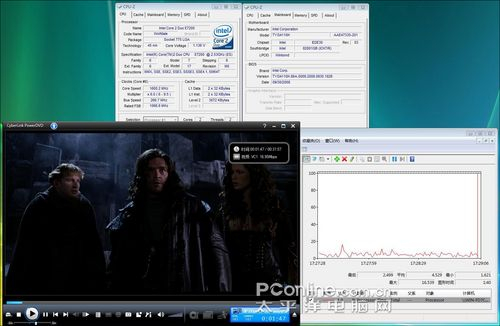这项测试,我们选用了VC-1编码格式的影片《凡赫辛》和H.264编码格式的影片《X战警III》来做测试,并打开硬件加速,测试集成显卡的解码性能。