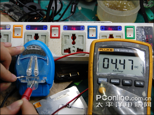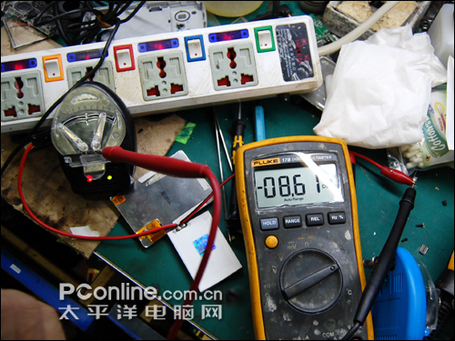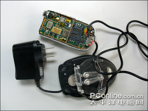 最后一步只需将外引线连接在主板电池触点上面。注意正负极别弄错了,引出来的电流用万用表测量一下,确定正负极之后再夹上电池,别将电池充反。GEN也没试一下充反了会有什么结果,也许会自动保护。下面还将对做好的充电器进行测试,看看到底充电效果如何。
