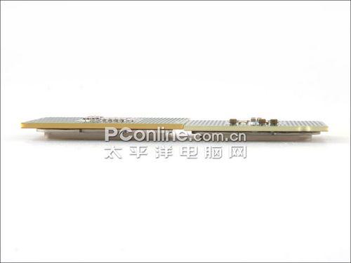 Core i7采用全新的LGA 1366接口设计,从图上可以看出,金属点更多更密集,形象为椭圆型。