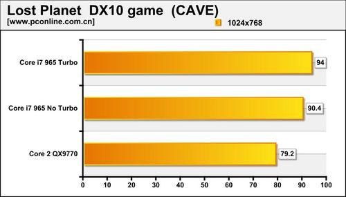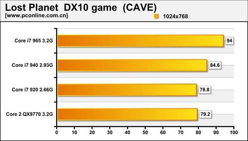 失落的星球是一款对多核优化较好的游戏,拥有高频+更强多线程处理能力的Core i7 965大幅领先QX9770。