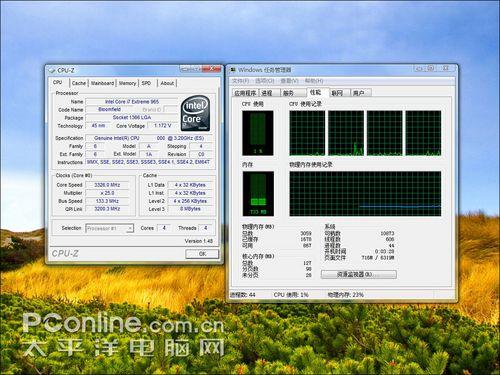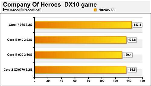 在英雄连的测试中,与首测Core i7 940落后于QX9770不同,本次评测则是940稍微领先。出现这种情况的原因是Core i7平台更为成熟了,CPU的步进从B0更新为C0,主板BIOS为正式版以及开启了Turbo Mode。