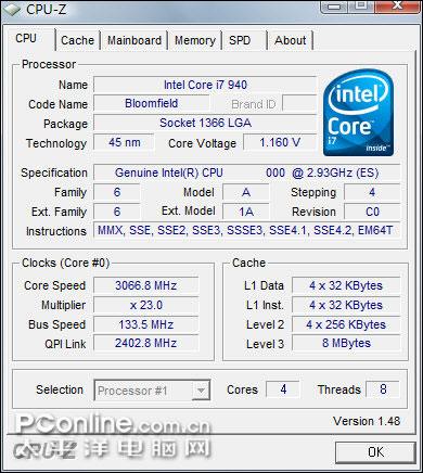 Core i7是一款基于全新Nehalem架构的CPU,采用LGA 1366接口,集众多先进技术于一身,如集成内存控制器、三通道技术支持、全新QPI总线、超线程技术的回归、Turbo Mode内核加速等。早在九月底,我们PConline评测室就已抢先其它媒体,为大家送上了Core i7 940的全国首测,使大家对Core i7有了初步了解。