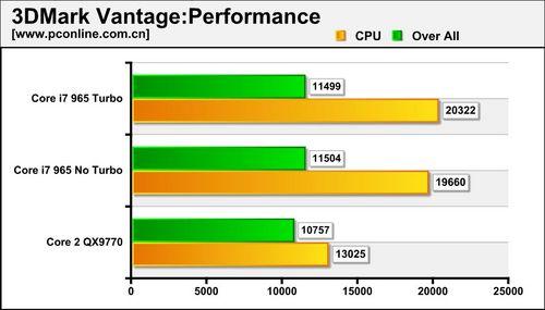 我们可以看到,Turbo Boost自动超频模式带来了一定的性能提升,在不影响TDP的情况下提供免费性能提升,何乐而不为呢?前面的章节已提到,Core i7 965 Extreme Edition具有更丰富的Turbo Boost选项,如何利用它进行超频呢?马上进入下一章节。