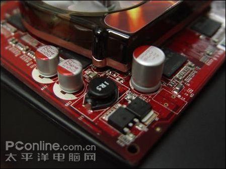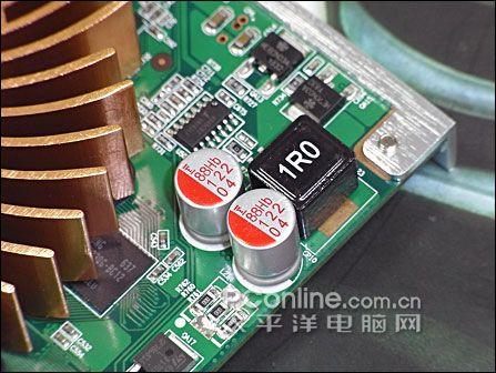 核心/显存独立供电设计,得益于卓越的功耗控制,供电电路无需复杂,不过HD4650冰钻仍然坚持采用日化PSC及密封式电感等优质元件,力求显卡运行的稳定。