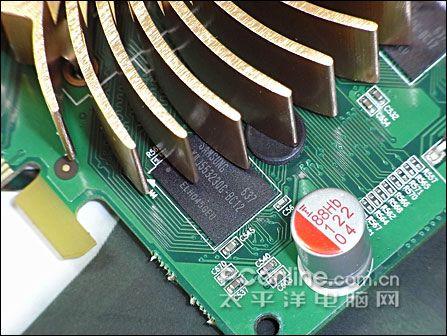 斯巴达克 9600GSO白金版颗粒为三星1.0ns GDDR3。由6颗容量为64M的显存颗粒,组成384M/192bit显存规格,核心及显存频率达到600/1800MHz。理论上1.0ns的显存颗粒最高运行频率能够达到2000MHz,加上固态电容和全封闭电感,超频潜力巨大。