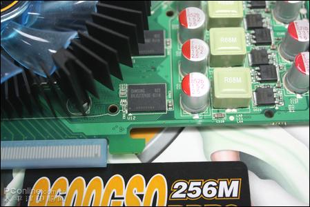 显存部分,采用1.0ns三星极速显存,显存容量为主流的256M,默认频率达550/1375/1800MHZ,提供出色的3D图形处理性能。
