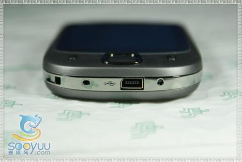 电源开关键位于手机机身顶部位置,手机底部有一个Mini USB数据线接口和一个手机挂饰孔。