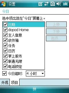 默认设置下我们是看不到多普达的dopod home界面,需要进入系统设置的今日设置里为该项勾选上即可。