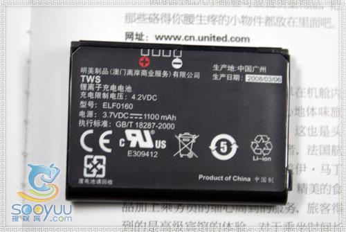 多普达S500标配是一块型号为ELF0160容量为1100mAh的锂离子电池,在待机表现上,S500还是不错的,在正常使用下基本上都是两到三天左右。