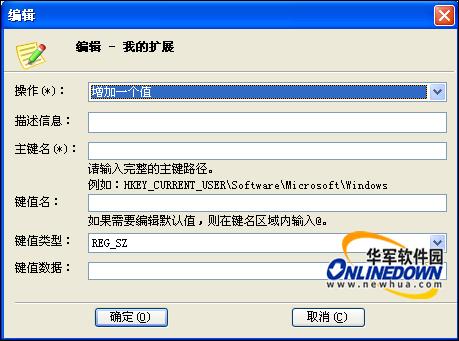首先需要确定的是操作方式:增加值、增加键、删除值还是删除键。确定以后可以在描述信息信息输入你的操作描述,然后在主键名里面输入目标主键。如果目标主键不存在,那么System Repair Enineer将自动创建。