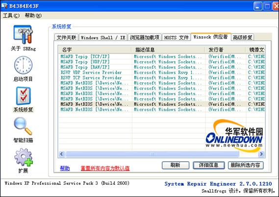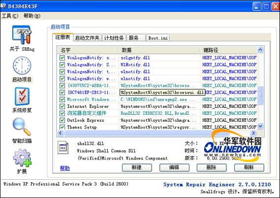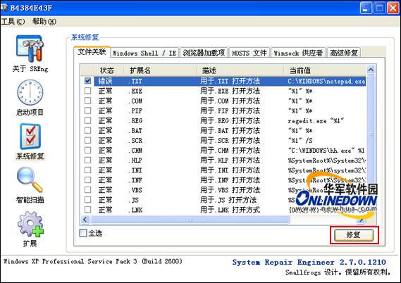 System Repair Engineer 系统修复功能是在原 RegFix 注册表关键值修复工具的基础上予以强化完成的。