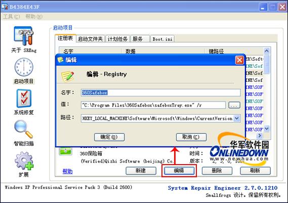 System Repair Engineer能够编辑任何注册表被支持的注册表启动项键值,选择需要编辑的内容点击编辑按钮就可以启动编辑对话框。你可以重新给你选择的项目输入新的命令甚至新的名字。如图5所示。