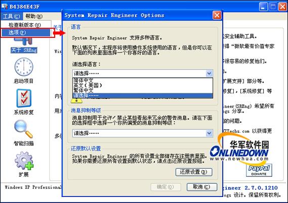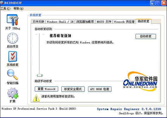 如果System Repair Engineer发现在默认的键值被修改成非默认值,且这个键值经常被计算机病毒修改,那么会弹出一个警告提示提醒用户注意。