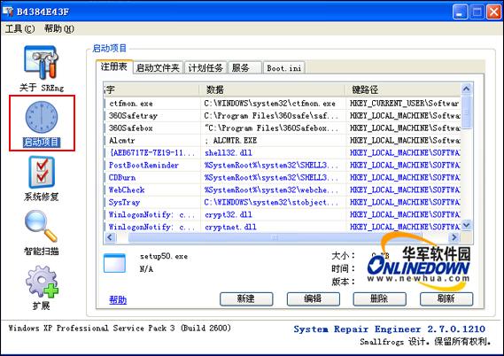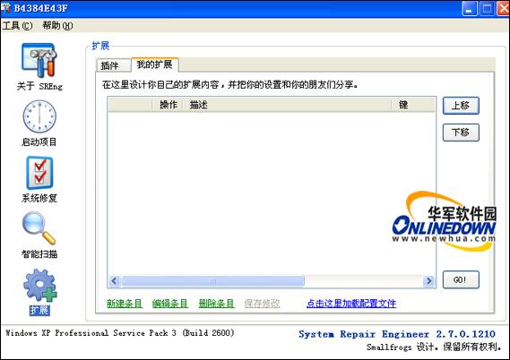 System Repair Engineer一款小巧而实用的安全辅助工具,可以根据自己需要下载更多增强插件,最重要的特色就是注册表项的管理与修复,如果你的注册表遭受恶意程序的修改,你可以使用它来扫描修复。