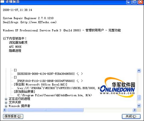 扫描完成以后进度条将自动关闭,并出现一个报告窗口,报告窗口用于查看扫描后的结果并能够扫描结果保存下来。如图18所示。