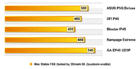 技嘉GA-EP45-UD3P超频后的总线频率已经远远高于其他品牌的P45主板。