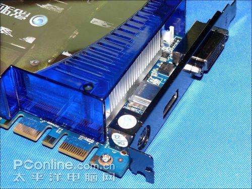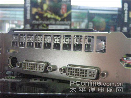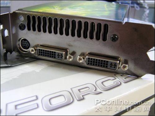 显卡视频输出接口方面,XFX讯景9800GTX+采用双DVI+S-Video的设计,再搭配DVI to D-Sub转接头,可以满足就绝大部分用户日常所需。同时显卡采纳双档板辅助散热设计,散热孔将把热空气排出机箱外。