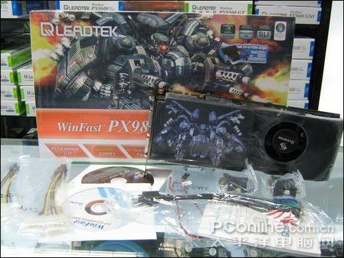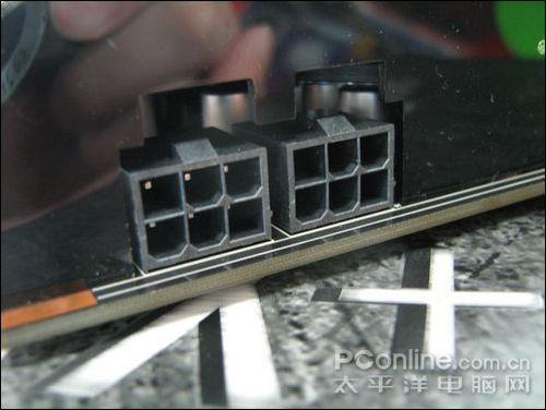 丽台 PX9800GTX+为了满足显卡供电需求,显卡标配了两个双路12V 6pin外接供电。